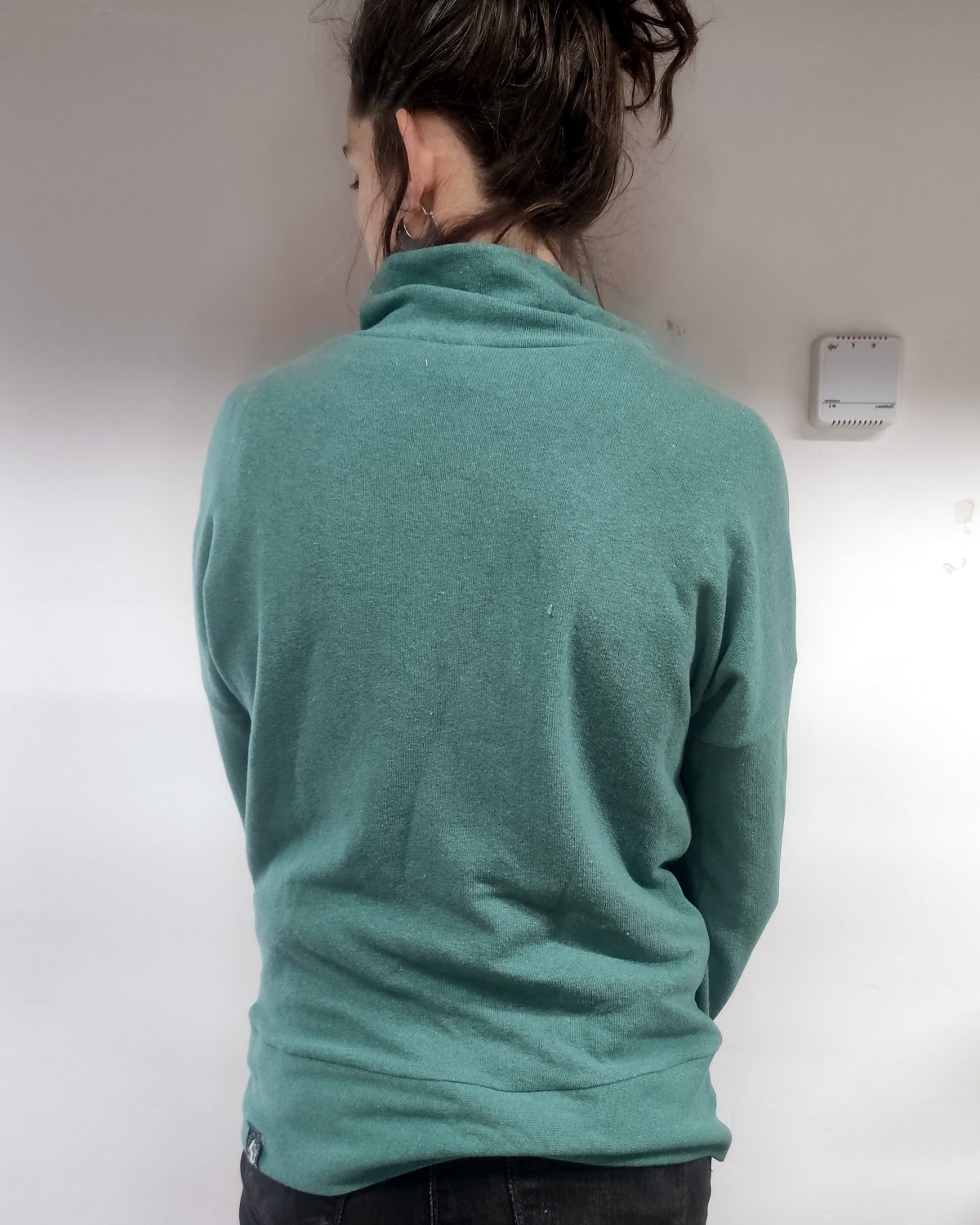 Le pull est ample. Si vous voules un porté ajusté, prenez une taille en-dessous.